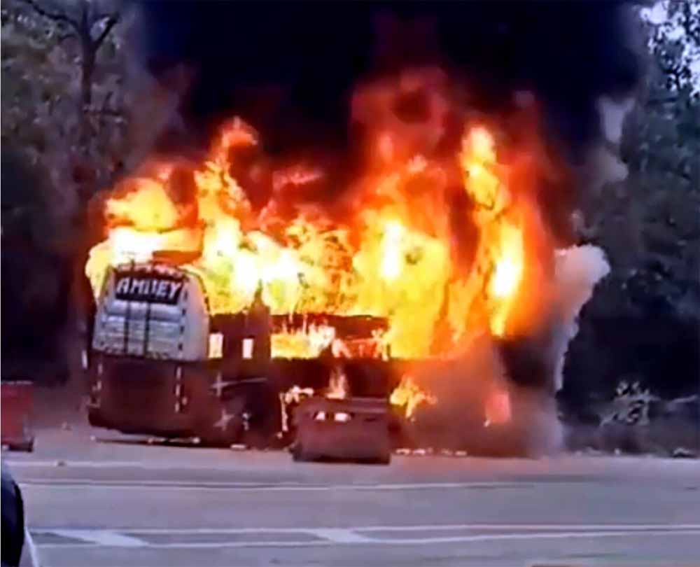 मोटरसाइकिल टक्कर के बाद डीटीसी बस में आग, यात्रियों की हुई रूह कंपाने वाली घटना