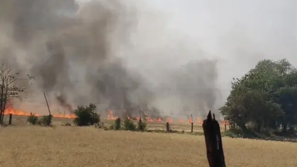 बिजली के शॉर्ट सर्किट से खेत में लगी आग