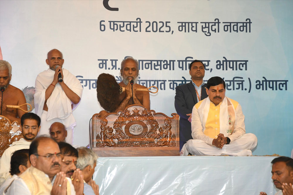 सीएम डॉ. मोहन यादव आज भोपाल में श्री 108 विद्यासागर जी महाराज की प्रथम समाधि स्मृति दिवस के अवसर पर आयोजित गुरु गुणानुवाद सभा में शामिल हुए। इस अवसर पर उन्होंने घोषणा की कि आचार्य श्री विद्यासागर जी महाराज की स्मृति में भोपाल में एक बेहतर स्थान बनाया जाएगा, जो उनकी आध्यात्मिक विरासत, त्याग, तपस्या और ज्ञान को सहेजते हुए जनमानस को प्रेरणा प्रदान करेगा।
