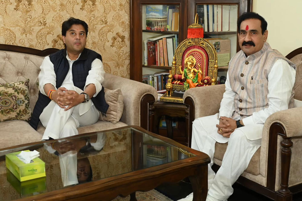 दरअसल, केंद्रीय मंत्री ज्योतिरादित्य सिंधिया रात को भोपाल पहुंचे और सबसे पहले नरोत्तम मिश्रा के आवास पर जाकर मुलाकात की। इसके बाद सिंधिया मध्यप्रदेश के राजस्व विभाग के मंत्री करण सिंह वर्मा के आवास जाकर भी मिले। प्रदेश के पूर्व मुख्यमंत्री और वर्तमान कृषि एवं पंचायत विकास मंत्री शिवराज सिंह चौहान से भी मुलाकात करने पहुंचे।