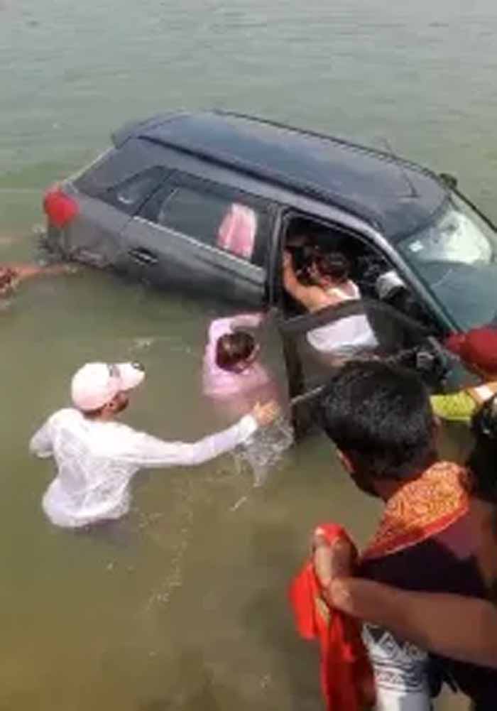 शिवपुरी जिले के अमोला थाना इलाके में रविवार को सिंध डैम पर एक बड़ा हादसा होते होते टल गया। यहां एक कार को पीछे से आ रहे ट्रक ने टक्कर मार दी। टक्कर के बाद कार अनियंत्रित होकर सिंध डैम में जा गिरी। कार के डैम में गिरते ही मौके पर मौजूद गोपाल परिहार, सुखदेव लोधी, मनोज कलावत और राकेश मिस्त्री ने बिना अपनी जान की परवाह किए डैम में छलांग लगाई और पानी में डूब रही कार में फंसे पति-पत्नी व दोनों बच्चों को सुरक्षित बाहर निकाल लिया। कार में कोटा निवासी शैलेन्द्र सिंह हांडा, उनकी पत्नी रेखा हांडा और बच्चे नोदिघ हांडा व देवदत्त हांडा सवार थे।