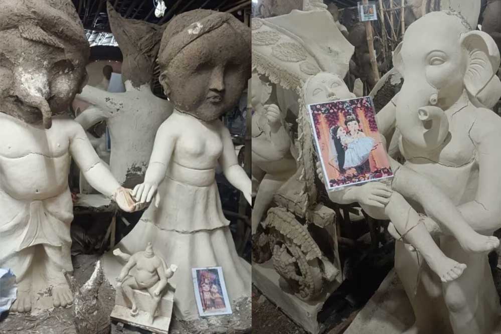 भगवान गणेश की आपत्तिजनक मूर्तियां बनाने को लेकर इंदौर में हंगामा खड़ा हो गया। भगवान गणेश को एक लड़की के संग दिखान पर हिंदूवादी संगठन के कार्यकर्ता भड़क उठे और कलाकारों के मुंह पर कालिख पोत दी। बाद में हंगामा बढ़ने पर पुलिस ने आरोपी मूर्तिकारों को गिरफ्तार कर लिया है। आरोपी पश्चिम बंगाल के रहने वाले हैं।