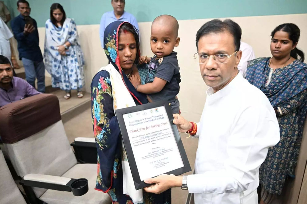 गोवा में पति के अंगों को डोनेट करने पर महिला को गोवा के स्वास्थ्य मंत्री ने सर्टिफिकेट दिया, 5 लोगों को दिया नया जीवन