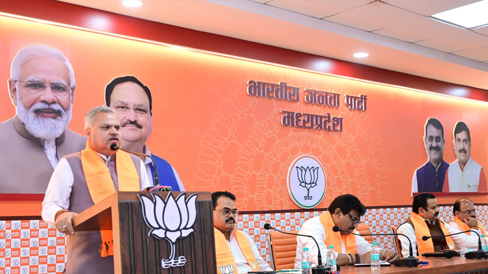 भारतीय जनता पार्टी के क्षेत्रीय संगठन महामंत्री श्री अजय जामवाल एवं प्रदेश प्रभारी डॉ. महेंद्र सिंह ने सोमवार को  भाजपा प्रदेश कार्यालय में भोपाल संभाग के नगरीय एवं ग्रामीण निकायों के जनप्रतिनिधियों की बैठक को संबोधित करते हुए कहा कि प्रधानमंत्री श्री नरेंद्र मोदी जी ने 2047 तक भारत को विकसित देशों की पंक्ति में लाने का संकल्प लिया है। इस दिशा में प्रधानमंत्री श्री मोदी जी ने जब से देश की कमान संभाली है तभी से तेजी से विकास कार्य हो रहे है। हमें भी तन-मन और धन से अपने-अपने क्षेत्र का विकास करना होगा। देश की जनता का भरोसा हमारी पार्टी पर लगातार प्रधानमंत्री श्री मोदी जी के नेतृत्व में बढ़ता जा रहा है। हमें लगातार जनता का समर्थन इसलिए मिल रहा है क्योंकि प्रधानमंत्री श्री नरेन्द्र मोदी जी के नेतृत्व में हर वर्ग के लिए विकास योजनाएं शुरू की गई हैं। प्रदेश प्रभारी डॉ. महेंद्र सिंह ने कहा कि प्रदेश में ट्रिपल इंजन की सरकार होने के नाते पिछले कुछ सालों में प्रदेश का विकास तेज रफ्तार से हुआ है। इसे हम सबको मिलकर आगे बढाना है। श्रद्वेय अटल बिहारी वाजपेयी जी के सपनों को साकार करने के लिए उनके बताए मार्ग पर चलकर विकास करना होगा। इस अवसर पर प्रदेश महामंत्री व विधायक श्री भगवानदास सबनानी, प्रदेश उपाध्यक्ष श्री पकंज जोशी एवं जिलाध्यक्ष श्री रविंद्र यति मंचासीन रहे।