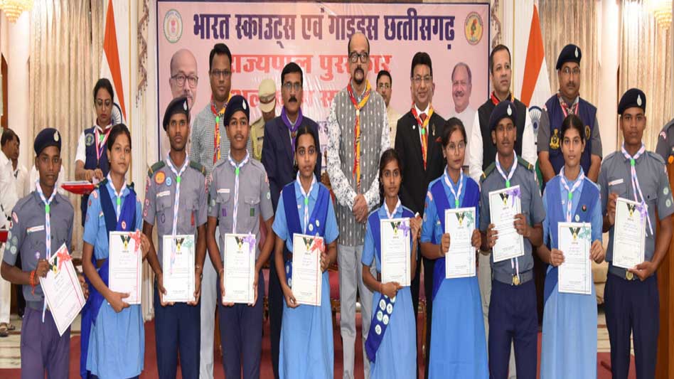 राज्यपाल रमेन डेका के मुख्य आतिथ्य में आज राजभवन में स्काउट्स और गाइड्स छत्तीसगढ़ राज्यस्तरीय अलंकरण समारोह आयोजित किया गया। समारोह में राज्यपाल डेका ने राज्य के सर्वश्रेष्ठ स्काउटर, गाइडर, रोवर, रेंजर, एवं स्काउट-गाइड को राज्यपाल पुरस्कार से सम्मानित किया। इस अवसर पर उन्होंने कहा कि जलवायु परिवर्तन की समस्या को देखते हुए प्रकृति और पर्यावरण को सुरक्षित रखना हम सबकी सबसे बड़ी जिम्मेदारी है। स्काउट्स एवं गाइड्स को इसमें अपना सक्रिय योगदान देना होगा। उन्होंने सभी से एक पेड़ मां के नाम पर लगाने और दोस्तों एवं परिजनों को भी इसकेे लिए प्रेरित करने की बात कही।