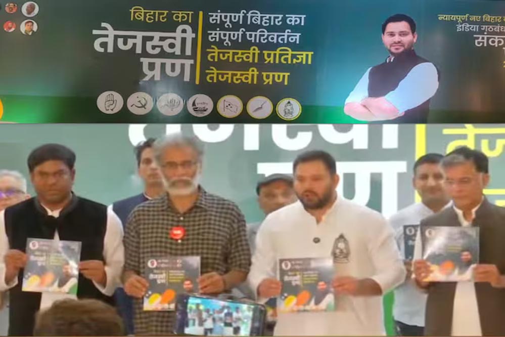 महागठबंधन का घोषणापत्र जारी, बिहार में नए एजेंडे के तहत 'तेजस्वी प्रण'