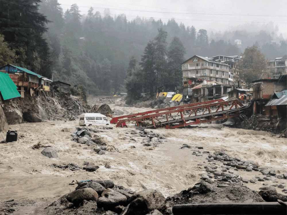 हिमाचल प्रदेश के अलग-अलग हिस्सों में मंगलवार को भी भारी बारिश जारी रही। सूबे में भारी बारिश से हालात बेहद खराब हो गए हैं। भारी बारिश के कारण रेल सेवा स्थगित कर दी गई है। छह राष्ट्रीय राजमार्गों समेत 1,311 सड़कें बंद हैं। एक रिपोर्ट के मुताबिक, कुल्लू और मंडी में लगभग 2 हजार वाहन जहां तहां फंस गए हैं। स्कूलों में छुट्टी घोषित कर दी गई है। मौसम विभाग ने राज्य के कुछ इलाकों में भारी से ज्यादा भारी बारिश का रेड अलर्ट जारी किया है।