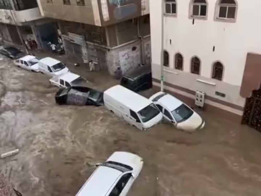 सऊदी अरब के जेद्दा शहर और उसके आसपास के क्षेत्रों सहित मक्का और मदीना के अधिकांश इलाकों में भारी बारिश, जाम में फंसे लोग