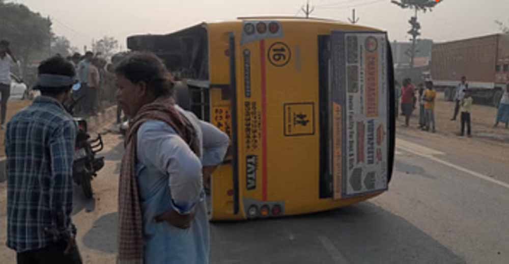 तेज रफ्तार स्कूली बस अनियंत्रित होकर पलटी