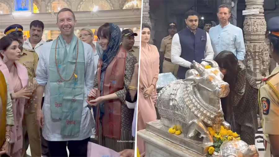 हॉलीवुड एक्ट्रेस डकोटा जॉनसन और उनके बॉयफ्रेंड क्रिस मार्टिन कुछ दिन पहले ही मुंबई आए हैं। दोनों ने शुक्रवार को मुंबई के बाबुलनाथ मंदिर में दर्शन किया और उनके कई वीडियो और तस्वीरें सोशल मीडिया प्लेटफॉर्म पर सामने आई हैं। इंस्टाग्राम पर शेयर किए गए वीडियो में डकोटा जॉनसन और क्रिस को मंदिर के अंदर खड़े देखा गया। एक वक्त पर डकोटा नंदी की मूर्ति की ओर गईं और उनके कानों में फुसफुसाया। ऐसा करते समय क्रिस उनकी ओर देख रहे थे। मुस्कुराते हुए वह क्रिस के पास आकर खड़ी हो गईं।