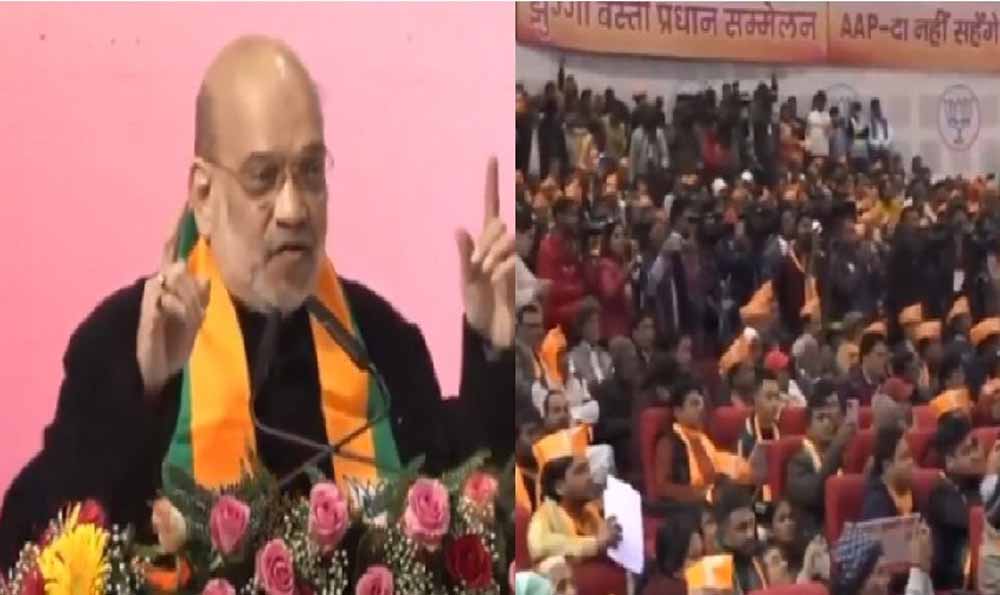 केंद्रीय गृह मंत्री अमित शाह ने झुग्गी बस्ती प्रधान सम्मेलन को संबोधित करते हुए कहा, "...मैं आज यहां आपको यह बताने आया हूं कि आप दिल्ली के मुक्तिदाता बन सकते हैं। 5 फरवरी दिल्ली का आपदा से मुक्ति दिवस है... मैं कहता हूं कि AAP दिल्ली के लिए आपदा बनी है लेकिन अरविंद केजरीवाल AAP के लिए आपदा बन गए हैं क्योंकि केजरीवाल और सिसोदिया जहां भी जाते हैं, दिल्लीवासियों को शराब की बोतलें दिखती हैं... 5 फरवरी भ्रष्टाचार मुक्ति दिवस है, 5 फरवरी झुग्गियों को गंदगी और गंदे पानी से मुक्ति दिलाने का है, 5 फरवरी असंवेदनशील और झूठ बोलने वाली सरकार से मुक्ति का है।