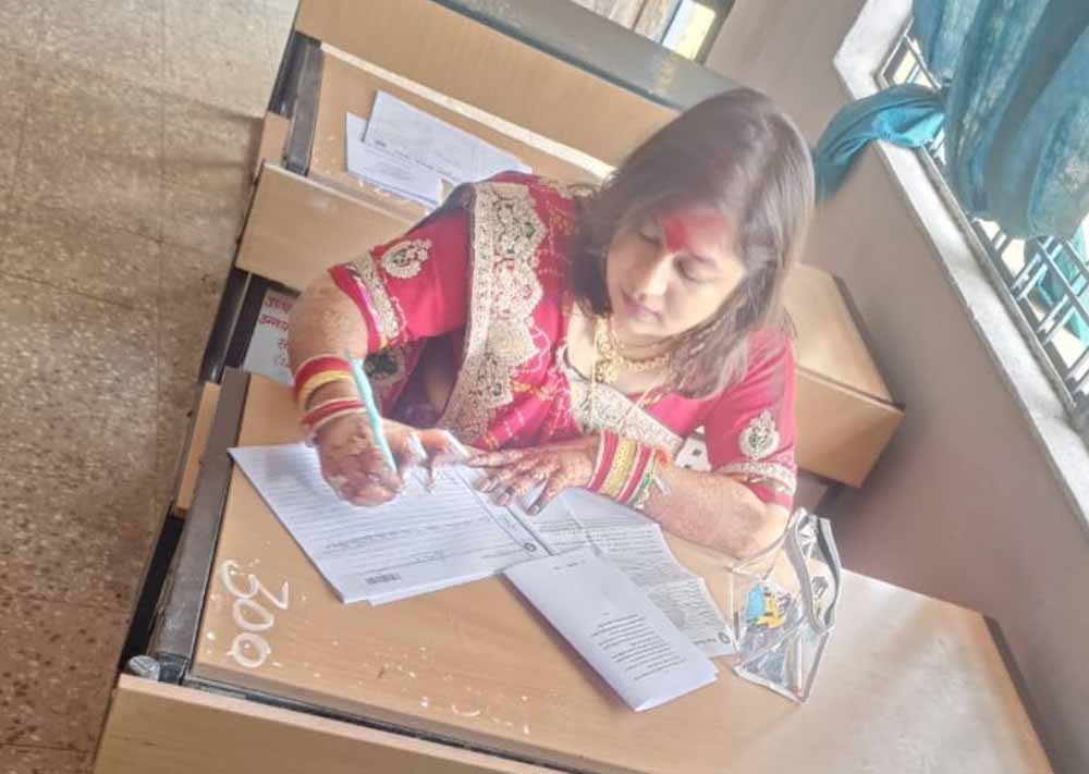 अगर मन में पढ़ने की लगन हो, तो... सौंसर में सात फेरे लेने के बाद पति संग परीक्षा केंद्र पहुंची दुल्हन