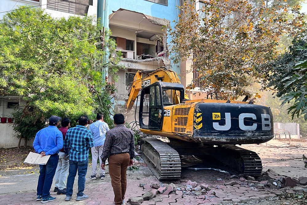 धार कोठी क्षेत्र में नगर निगम ने अवैध मकान पर बुलडोजर चलाया