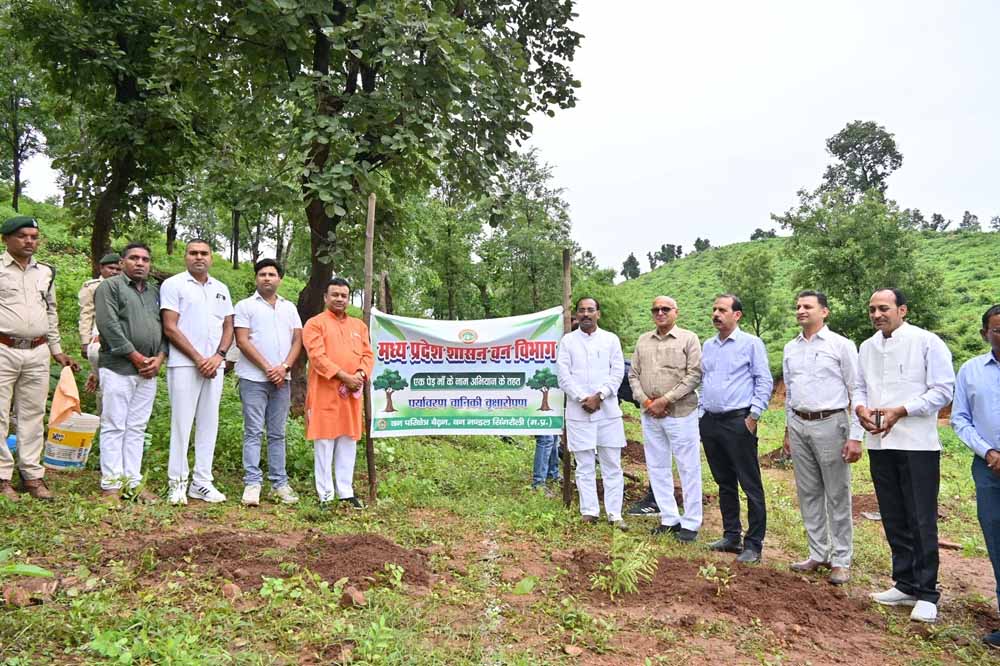 वन परिक्षेत्र बैढ़न में सांसद विधायक ने एक पेड़ मॉ के नाम अभियान के तहत किया पौधा रोपण