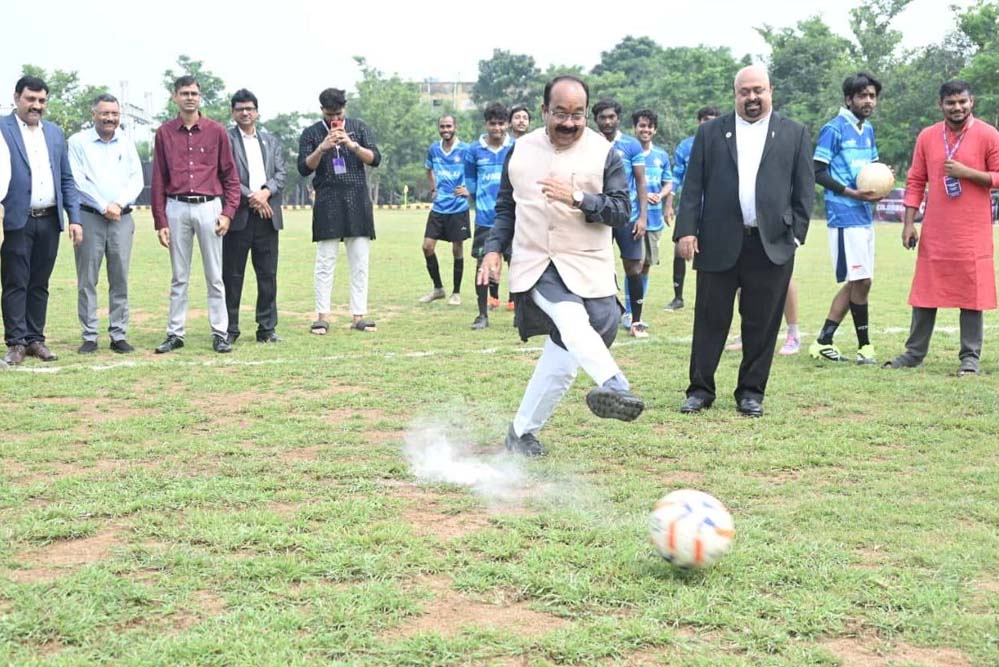 उप मुख्यमंत्री तथा खेल एवं युवा कल्याण मंत्री अरुण साव ने आज नवा रायपुर स्थित हिदायतुल्ला राष्ट्रीय विधि विश्वविद्यालय (HNLU) में अंतर-विश्वविद्यालय उत्सव एचएनएलयू कोलोसस और आईएमयूएनसी-2025 (HNLU Colossus and IMUNC-2025) का शुभारंभ किया। 10 अक्टूबर से 12 अक्टूबर तक चलने वाले इस तीन दिवसीय आयोजन में देशभर के 65 विधि विश्वविद्यालयों के 500 युवा हिस्सेदारी कर रहे हैं। विधि की पढ़ाई कर रहे देश के अनेक शहरों से नवा रायपुर में जुटे युवा विभिन्न खेल प्रतियोगिताओं तथा साहित्यिक व सांस्कृतिक आयोजनों में भागीदारी करेंगे। वे मंथन, कूटनीति और वैश्विक समस्याओं के समाधान में भागीदारी के लिए विधि के छात्र-छात्राओं को प्रेरित करने आयोजित अंतरराष्ट्रीय मॉडल संयुक्त राष्ट्र सम्मेलन (International Model United Nations Conference) में भी हिस्सेदारी करेंगे। साव ने मशाल जलाकर कोलोसस और आईएमयूएनसी का उद्घाटन करने के साथ ही खेल प्रतियोगिताओं और सांस्कृतिक कार्यक्रमों का भी शुभारंभ किया।