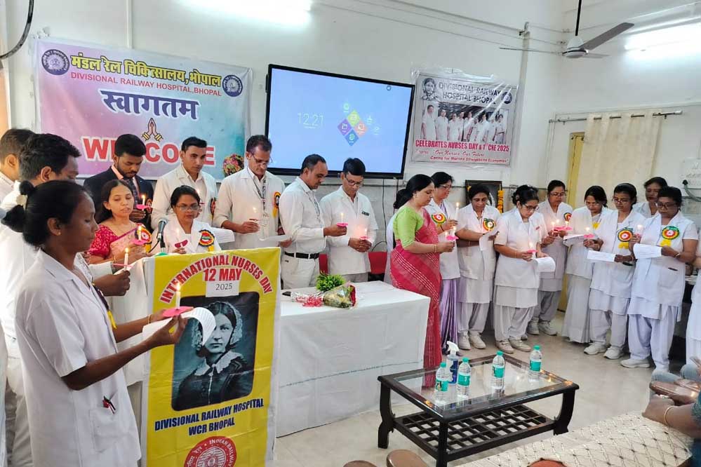 पश्चिम मध्य रेलवे के भोपाल मंडल में अंतरराष्ट्रीय नर्सेस डे को बड़े ही श्रद्धा, सम्मान और उत्साह के साथ मनाया गया। कार्यक्रम की अध्यक्षता मुख्य चिकित्सा अधीक्षक डॉ. अजय डोगरा ने की, जबकि आयोजन का संचालन मुख्य नर्सिंग अधिकारी श्रीमती ललिता लाल के नेतृत्व में किया गया। इस वर्ष की थीम "नर्सेस: एक नेतृत्व की आवाज – गुणवत्ता प्रदान करना, समानता सुनिश्चित करना" के अंतर्गत कार्यक्रम का केंद्र बिंदु नर्सिंग पेशे की महत्ता, नेतृत्व में उनकी भूमिका और स्वास्थ्य क्षेत्र में उनके समर्पण को उजागर करना रहा।