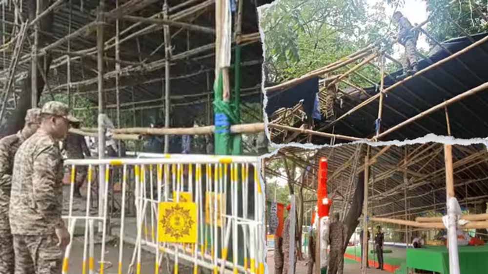 मंगलवार को हुई इस घटना से के स्थल से कुछ ही दूरी पर सेना के अधिकारियों ने मध्य कोलकाता के मायो रोड पर गांधी प्रतिमा के पास बनाए गए तृणमूल कांग्रेस के मंच को सोमवार को इस आधार पर तोड़ना शुरू कर दिया था कि पार्टी ने कार्यक्रम की अनुमति की अवधि पार कर ली थी। मायो रोड रक्षा बलों के स्वामित्व और प्रशासन वाला क्षेत्र है।