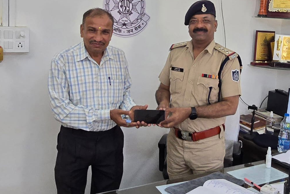 बरबसपुर, शासकीय उचित मूल्य की दुकान में सेल्समेन बालमुकुन्द मिश्रा पिता महेश्वर प्रसाद मिश्रा उम्र करीब 48 साल निवासी ग्राम बम्हनी कोतवाली अनूपपुर द्वारा थाना कोतवाली अनूपपुर में शिकायत दर्ज कराई कि दिनांक 15.08.2024 को अनूपपुर आते वक्त रास्ते में रियल मी कंपनी का 18000 रूपये कीमती स्मार्ट फोन गिरकर गुम हो गया है। जो टी. आई. कोतवाली अरविन्द जैन के द्वारा कालेज छात्र के गुम मोबाईल की रिपोर्ट सी.ई.आई.आर. पोर्टल में दर्ज की जाकर पतासाजी की गई एवं प्रधान आरक्षक महेन्द्र सिहं एवं आरंक्षक अनूप पुषाम के द्वारा गुमा हुआ मोबाईल ग्राम परसवार अनूपपुर से दस्तयाब कर सेल्समेन को सौंपा गया है। अठारह हजार रूपये कीमती गुम हुए मोबाईल के प्राप्त होने पर बालमुकुन्द मिश्रा द्वारा अनूपपुर पुलिस का आभार व्यक्त किया।