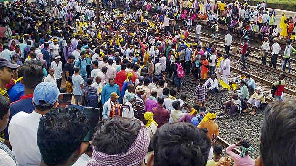 कुड़मी समाज का आंदोलन उग्र, तीर-धनुष के साथ पारसनाथ स्टेशन पर रेल रोककर जताया विरोध