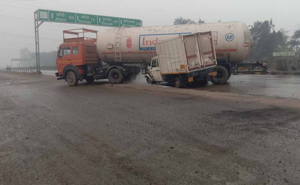कानपुर में LPG टैंकर और पिकअप की भिड़ंत से हाईवे पर 10 KM जाम