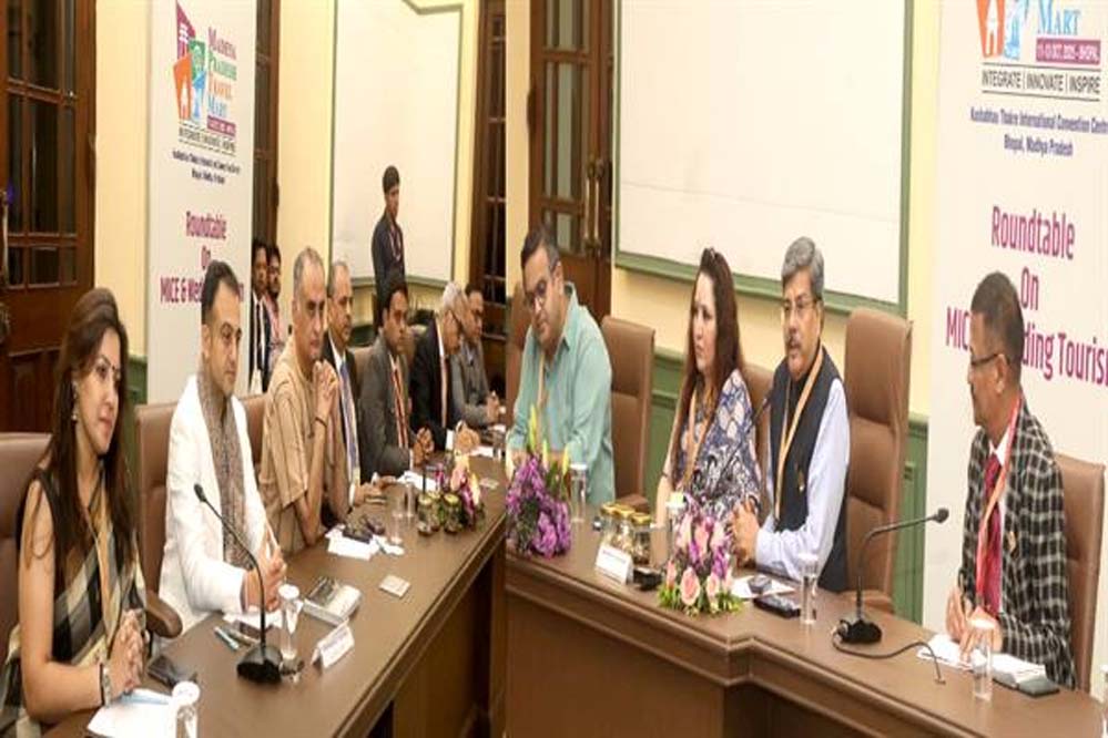 मध्यप्रदेश पर्यटन बोर्ड द्वारा एफआईसीसीआई वेडिंग टूरिज्म कमेटी के सहयोग से कुशाभाऊ ठाकरे अंतर्राष्ट्रीय कन्वेंशन सेंटर, भोपाल में “एम.आई.सी.ई. एवं वेडिंग टूरिज्म” विषय पर राउंडटेबल चर्चा हुई। कार्यक्रम का संचालन एफआईसीसीआई वेडिंग टूरिज्म कमेटी के चेयरमैन चेतन वोहरा ने किया।