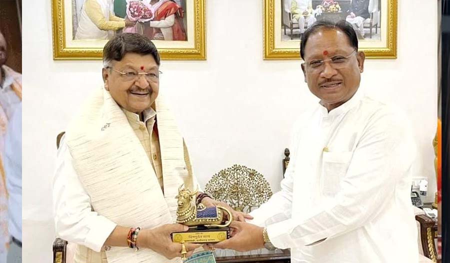 मुख्यमंत्री  विष्णु देव साय से आज उनके निवास कार्यालय में मध्यप्रदेश शासन के शहरी विकास मंत्री श्री कैलाश विजयवर्गीय ने सौजन्य मुलाकात की।    इस दौरान दोनों नेताओं के बीच राज्य एवं क्षेत्रीय विकास से जुड़े विविध विषयों पर चर्चा हुई। मुख्यमंत्री साय ने श्री विजयवर्गीय का आत्मीय स्वागत किया तथा उन्हें छत्तीसगढ़ की पारंपरिक संस्कृति का प्रतीक शॉल एवं नंदी भेंटकर सम्मानित किया।