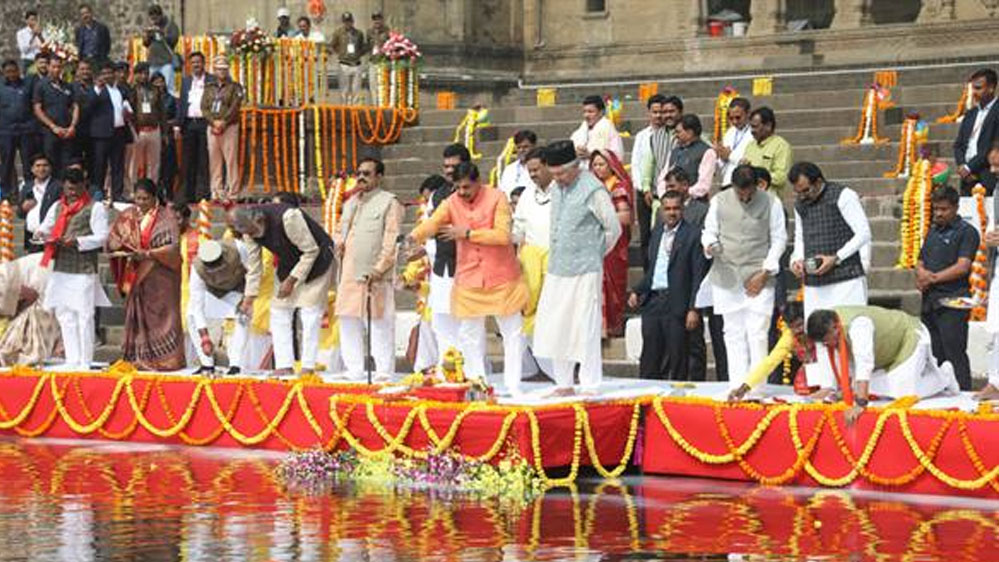 मुख्यमंत्री डॉ. यादव ने मंत्रि-परिषद के सदस्यों के साथ माँ नर्मदा को चुनरी अर्पित कर दुग्ध अभिषेक भी किया। नर्मदा पूजन में 20 स्थानीय पंडितों द्वारा नर्मदाष्टक का उच्चारण कर विधि-विधान से पूजन कराया। उल्लेखनीय है कि मुख्यमंत्री डॉ. यादव और मंत्रि-परिषद के सदस्य शुक्रवार को केबिनेट बैठक के लिये महेश्वर पहुँचे थे।