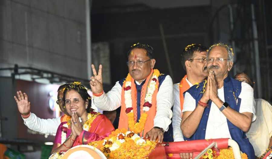 मुख्यमंत्री विष्णु देव साय के नेतृत्व में आज रायपुर में भारतीय जनता पार्टी का भव्य और ऐतिहासिक रोड शो आयोजित हुआ, जिसमें जनसैलाब उमड़ पड़ा। भनपुरी से शुरू हुए इस भव्य रोड शो में भाजपा कार्यकर्ताओं और स्थानीय नागरिकों ने पूरे उत्साह के साथ भाग लिया। सड़कों के दोनों ओर हाथ में कमल का झंडा थामे भाजपा कार्यकर्ताओं एवं आम जनों द्वारा पुष्पवर्षा के माध्यम से रोड शो का जगह-जगह स्वागत किया गया। मुख्यमंत्री श्री साय ने भी जनता का अभिवादन स्वीकार किया। उन्होंने रोड शो में उमड़ी भारी भीड़ के लिए जनता का आभार भी जताया।