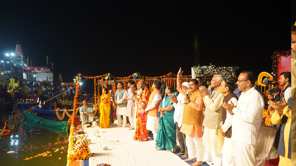 मुख्यमंत्री डॉ. यादव ने नर्मदा तट पर बनाये गये आकर्षक जल मंच पर वैदिक मंत्रोच्चार के मध्य माँ नर्मदा की विधिवत पूजा-अर्चना की। उन्होंने माँ नर्मदा का जल अभिषेक कर माँ नर्मदा की महाआरती की।