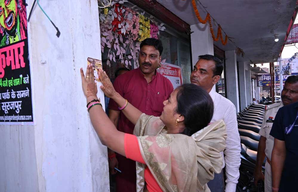 सूरजपुर की दुकानों में ग्राहकों से की सीधी बातचीत, जागरूकता के लिए लगाए गए स्टीकर