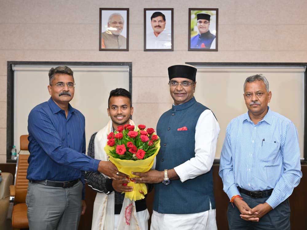हॉकी एशिया कप जीत पर मंत्री सारंग ने विवेक सागर का किया सम्मान