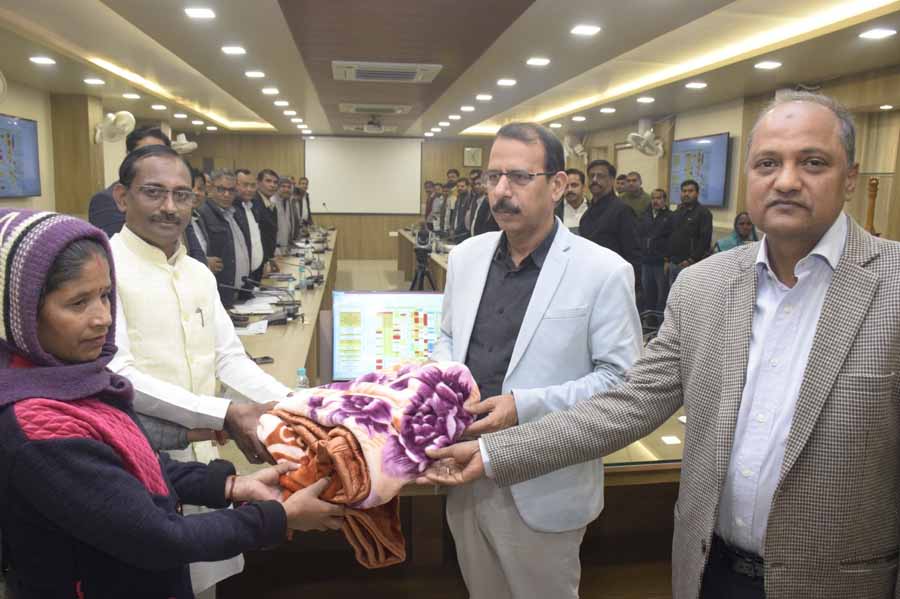 विधायक एवं कलेक्टर ने ठंड से सिकुड़ते लोगों को कम्बल का किया वितरण