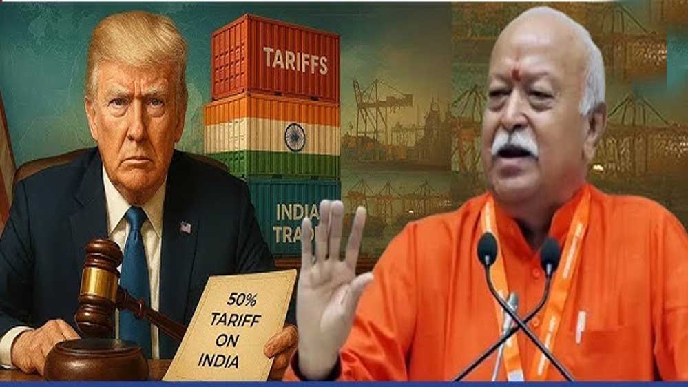 राष्ट्रीय स्वयंसेवक संघ (RSS) के प्रमुख मोहन भागवत ने अमेरिकी राष्ट्रपति डोनाल्ड ट्रंप द्वारा भारत पर लगाए गए टैरिफ को लेकर अपनी प्रतिक्रिया दी है. नागपुर में एक कार्यक्रम को संबोधित करते हुए भागवत ने कहा कि यह टैरिफ भारत के बढ़ते प्रभाव के डर का नतीजा है.