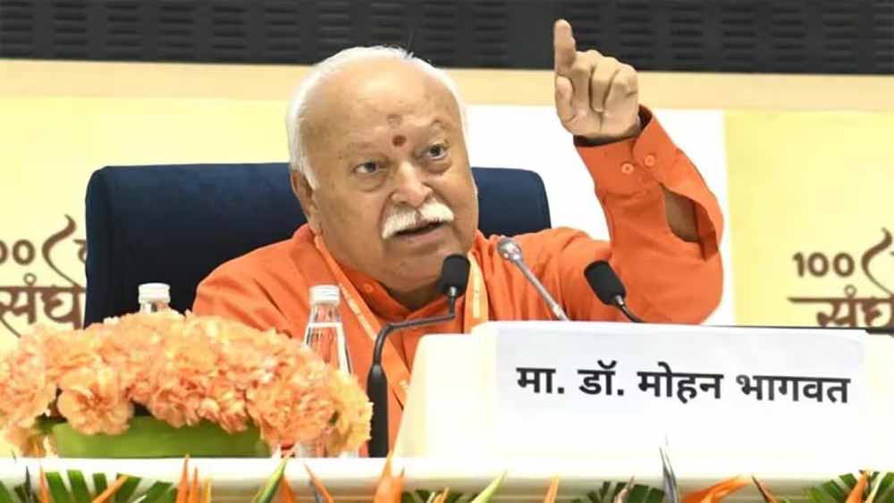 आरएसएस के 100 साल पूरा होने के मौके पर संघ की ओर से देश भर में कार्यक्रमों का आयोजन होना है। इसकी शुरुआत दिल्ली में तीन दिवसीय सम्मेलन हो रहा है, जिसमें समाज के विविध वर्गों से आने वाले लोगों से संघ प्रमुख मोहन भागवत बात कर रहे हैं। उन्होंने गुरुवार को आयोजन के तीसरे दिन कई मुद्दों पर खुलकर बात की। उन्होंने कहा कि यह जरूरी है कि परिवार में तीन बच्चे होने चाहिए। इसके अलावा हमें अपनी भूमिका अवैध घुसपैठ को रोकने में भी निभानी होगी। उन्होंने कहा कि सरकार अवैध घुसपैठ रोकने की कोशिश कर रही है, लेकिन समाज को भी अपनी भूमिका निभानी होगी।