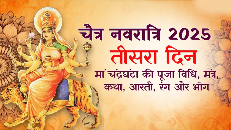चैत्र नवरात्रि के तीसरे दिन मां चंद्रघंटा की पूजा की जाती है। देवी भागवत पुराण के अनुसार, मां चंद्रघंटा का रूप अत्यंत शांत, सौम्य और ममतामयी है, जो अपने भक्तों को सुख-समृद्धि और शांति प्रदान करता है। इस दिन विशेष पूजा करने से आत्मविश्वास में वृद्धि होती है, जीवन में खुशहाली आती है और सामाजिक प्रतिष्ठा भी बढ़ती है। पूजा के फलस्वरूप, लोग आपको अधिक सम्मान देने लगते हैं। मां चंद्रघंटा का यह रूप विशेष रूप से सरल और शांति से परिपूर्ण है। वे अपने भक्तों की समृद्धि में वृद्धि करने के लिए प्रसिद्ध हैं। मां चंद्रघंटा की पूजा से न केवल भौतिक सुख में वृद्धि होती है, बल्कि समाज में आपका प्रभाव भी बढ़ता है। बता दें कि इस बार द्वतीया और तृतीया नवरात्री व्रत एक ही दिन किया जाएगा। आइए जानते हैं मां चंद्रघंटा की पूजाविधि, भोग, पूजा मंत्र और आरती के बारे में।