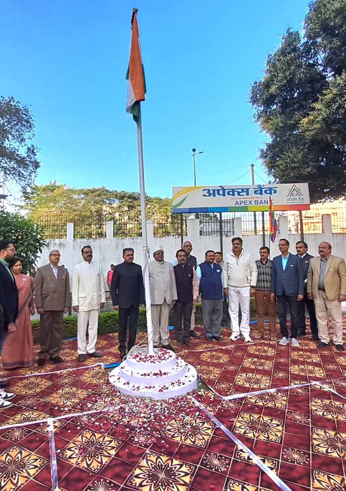गणतंत्र दिवस समारोह के अवसर पर अपर मुख्य सचिव, सहकारिता एवं प्रशासक, अपेक्स बैंक श्री अशोक बर्णवाल द्वारा भारत का राष्ट्रीय ध्वज तिरंगा बैंक के प्रांगण में फहराया एवं सभी ने राष्ट्रीय गान गाया । अपेक्स बैंक के प्रबंध संचालक श्री मनोज गुप्ता ने गान के पश्चात "भारत माता की जय" एवं "हिन्दुस्तान-अमर रहे" के सामूहिक नारे भी लगवाये। इस अवसर पर आयुक्त सहकारिता एवं पंजीयक, सहकारी संस्थायें,, मध्यप्रदेश श्री मनोज पुष्प, उप सचिव सहकारिता श्री मनोज सिन्हा, वि.क.अ. श्री अरूण मिश्र श्रीमति कृति सक्सेना, उप महाप्रबंधक श्री आर.एस.चंदेल, श्री के.टी.सज्जन, श्री अरविन्द बौद्ध वि.क.अ., प्रबंधक श्री विवेक मलिक, श्री समीर सक्सेना, श्री अजय देवड़ा, श्री आशीष राजोरिया सहित बैंक के अधिकारी एवं कर्मचारीगण उपस्थित हुए।