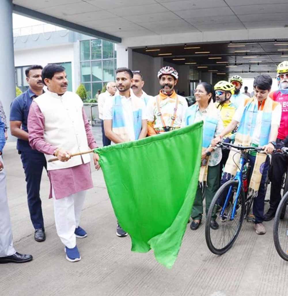मुख्यमंत्री डॉ. मोहन यादव ने सरदार वल्लभभाई पटेल की 150वीं वर्षगांठ को समर्पित पैडल टू प्लांट कार्यक्रम 'नया भारत-हरा भारत' की यात्रा पर निकल रही प्रदेश की बेटी अंतर्राष्ट्रीय पर्वतारोही सुश्री अंजना यादव को मुख्यमंत्री निवास स्थित समत्व भवन से रविवार को झंडी दिखाकर रवाना किया। पेडल टू प्लांट कार्यक्रम, नया भारत हरा भारत के अंतर्गत सुश्री अंजना यादव और उनकी टीम के द्वारा अरुणाचल प्रदेश से गुजरात 4 हजार किलोमीटर साइकिल से सफर तय किया जाएगा। इसके अंतर्गत वे भारत की संस्कृति, पर्यावरण संरक्षण और सामाजिक समरसता का संदेश देंगी। सुश्री अंजना यादव सरदार वल्लभभाई पटेल के एकीकृत, सशक्त और प्रगतशील भारत के दृष्टिकोण को भी प्रचारित करेंगी।