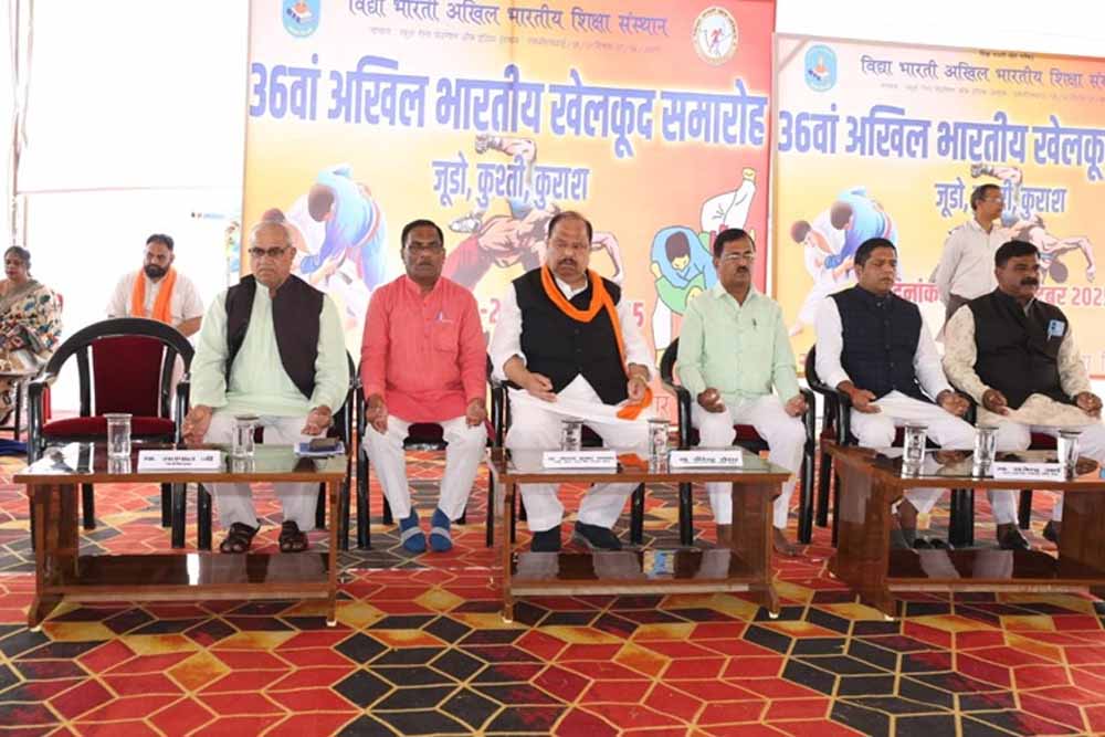 मंत्री श्री काश्यप ने उत्कृष्ट प्रदर्शन के लिए खिलाड़ियों की सराहना की और आह्वान किया कि वे भारत के परंपरागत खेलों को बढ़ावा दें। उन्होंने खेलों का महत्व बताते हुए कहा कि खेलों से स्वस्थ शरीर बनता है। स्वस्थ शरीर में स्वस्थ मस्तिष्क निवास करता है। खेलों से व्यक्तित्व का विकास होता है, इसलिए खेलना आवश्यक है। इसमें 22 राज्यों के 1100 खिलाड़ियों ने अपने प्रतिभा कौशल का प्रदर्शन किया। स्पर्धा के विजेता खिलाड़ी आगे एस.जी.एफ.आई. में विद्या भारती का प्रतिनिधित्व करेंगे। इस अवसर पर ग्राम भारती के प्रांतीय सचिव श्री वीरेंद्र सेंगर, विद्या भारती के पर्यवेक्षक श्री सतपाल सिंह, शारदा विहार समिति के सदस्य श्री राजेंद्र आर्य, प्रबंधक श्री राजेश तिवारी तथा विद्या भारती मध्य क्षेत्र के खेल सह संयोजक श्री मनीष वाजपेई उपस्थित रहे।