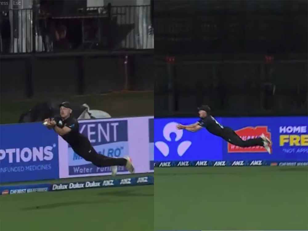 न्यूजीलैंड के ऑलराउंडर नाथन स्मिथ ने हैमिल्टन के मैदान पर एक खतरनाक कैच पकड़ा, जिसने सभी को हैरत में डाल दिया