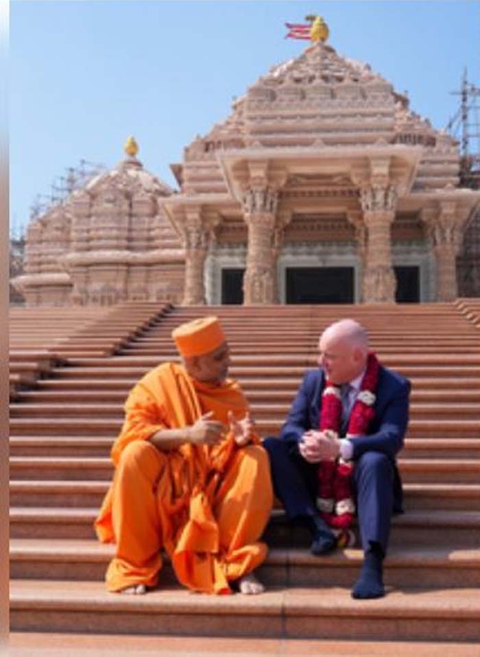 न्यूजीलैंड के प्रधानमंत्री क्रिस्टोफर लक्सन ने 16-20 मार्च तक भारत की अपनी आधिकारिक यात्रा के तीसरे दिन मंगलवार को नई दिल्ली में अक्षरधाम मंदिर का दौरा किया। लक्सन ने एक्स पर लिखा, "न्यूजीलैंड के हिंदू समुदाय ने हमारे देश के लिए बहुत बड़ा योगदान दिया है। आज दिल्ली में, मैंने कई कीवी-हिंदुओं के लिए पवित्र स्थान - बीएपीएस स्वामीनारायण अक्षरधाम मंदिर में नमन किया।"