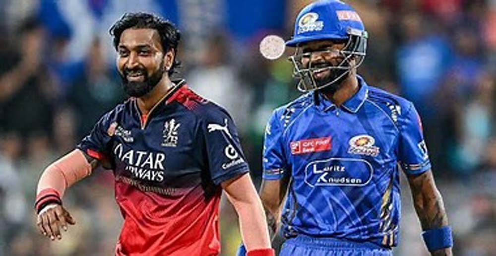 मैदान पर दोनों भाई की प्रतिद्वंद्विता देखिए। हार्दिक पांड्या की कप्तानी वाली मुंबई 222 रनों के लक्ष्य का पीछा कर रही है। आरसीबी की तरफ से क्रुणाल पांड्या गेंदबाजी के लिए आए हैं। स्ट्राइक पर तिलक वर्मा हैं और नॉन स्ट्राइक एंड पर खड़े हैं हार्दिक पांड्या। क्रुणाल की पहली गेंद पर तिलक सिंगल लेते हैं और स्ट्राइक पर आते हैं हार्दिक पांड्या। क्रुणाल ओवर की दूसरी गेंद डालते हैं और विश्वंसक मूड में खेल रहे हार्दिक उस पर छक्का जड़ देते हैं। अगली गेंद और फिर वही अंजाम। हार्दिक ने भाई की गेंद पर फिर छक्का जड़ा। कॉमेंट्री बॉक्स में नवजोत सिंह सिद्धू और जतिन सप्रू का दो भाइयों की प्रतिद्वंद्विता पर अंदाजे-बयां भी देखिए। जानदार, शानदार, जबरदस्त…।