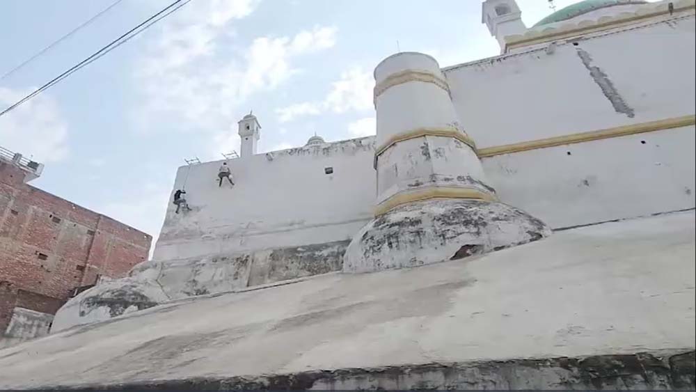 संभल की शाही जामा मस्जिद के बाहरी हिस्से में रंगाई-पुताई का काम शुरू