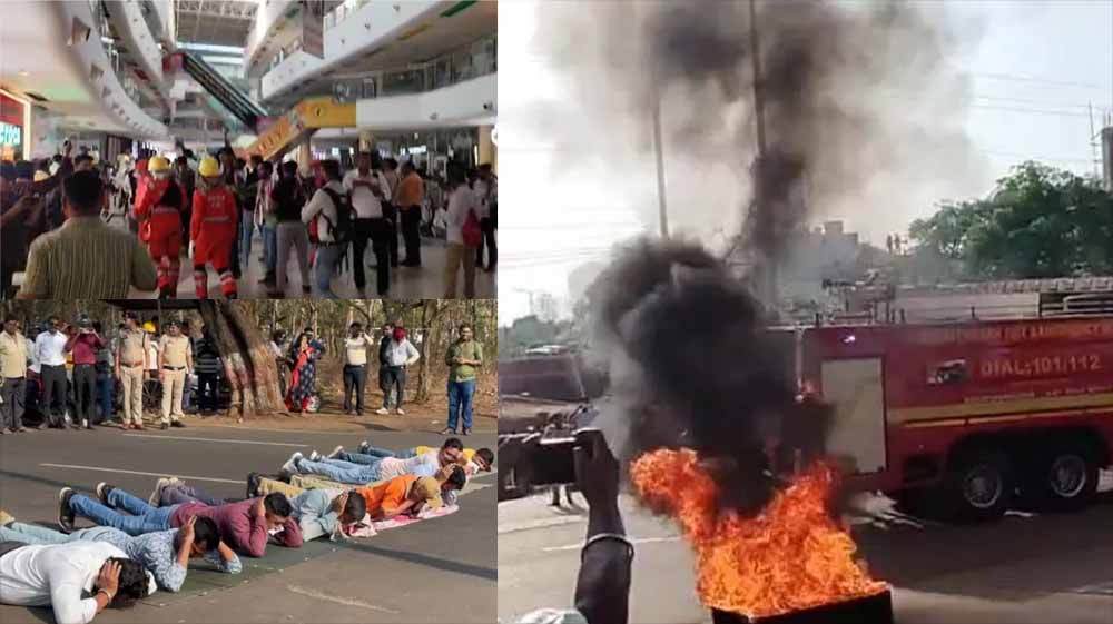 छत्तीसगढ़ के दुर्ग जिले में शाम 4 बजे एक हाई-अलर्ट मॉक ड्रिल का आयोजन किया गया, जिसमें युद्धकालीन आपातकालीन स्थिति का अभ्यास किया गया. इस मॉक ड्रिल में पाकिस्तान एयर फाइटर से सूर्या मॉल में बम गिराया गया. इस दौरान आग की लपटों के बीच सैकड़ो नागरिक फंसे जिसका रेस्क्यू किया जा रहा है.