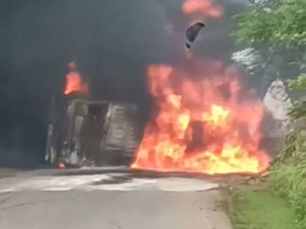 पेट्रोल टैंकर हादसा: भीषण आग के बाद तेज धमाका, इलाके में अफरा-तफरी