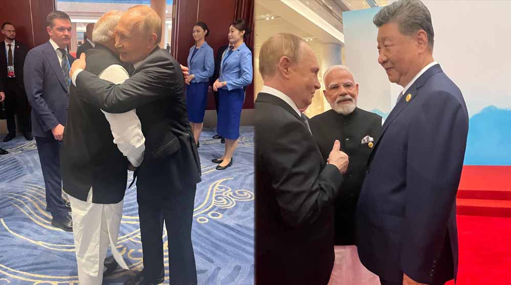 चीन के तियानजिन में सोमवार सुबह नए वर्ल्ड ऑर्डर के तीन दिग्गजों की मुलाकात हुई. SCO मीटिंग के दौरान आज सुबह प्रधानमंत्री नरेंद्र मोदी, मेजबान चीन के राष्ट्रपति शी जिनपिंग और रूस के राष्ट्रपति पुतिन मिले. तीन नेताओं की गर्मजोशी भरी मुलाकात की ये तस्वीरें अमेरिकी राष्ट्रपति डोनाल्ड ट्रंप का ब्लड प्रेशर बढ़ा सकती है.
