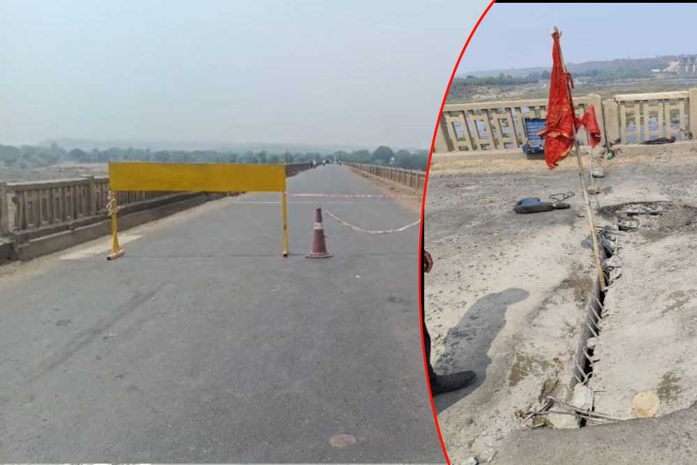 बाणसागर सोन नदी पुल का पिलर एक तरफ झुका, हुआ गड्ढा, रीवा शहडोल की आवाजाही बंद