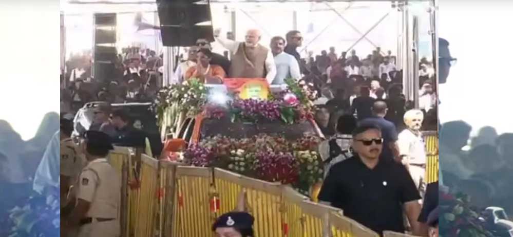 पीएम मोदी धार में खुले जीप से निकले, रास्ते में लोगों का किया अभिवादन
