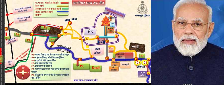 आज बागेश्वर धाम पहुंचेंगे पीएम मोदी, पार्किंग व्यवस्था और रूट डायवर्जन का चार्ट जारी