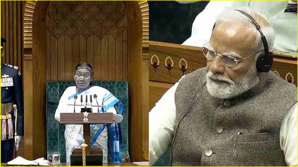 संसद की संयुक्त बैठक को संबोधित करते हुए राष्ट्रपति द्रौपदी मुर्मू ने कहा, 'विकसित भारत के निर्माण में किसान, जवान, विज्ञान के साथ ही अनुसंधान का बहुत बड़ा महत्वपूर्ण है। हमारा लक्ष्य भारत को ग्लोबल पावर हाउस बनाना है।