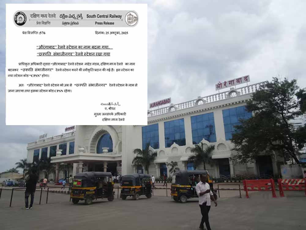 दक्षिण मध्य रेलवे ने एक ऐतिहासिक घोषणा करते हुए ‘औरंगाबाद रेलवे स्टेशन’ का नाम बदलकर ‘छत्रपति संभाजीनगर रेलवे स्टेशन’ कर दिया है। रेलवे ने बताया कि यह नाम परिवर्तन औपचारिक रूप से लागू कर दिया गया है और स्टेशन के सभी साइनबोर्ड, टिकट, घोषणाएं और डिजिटल सिस्टम में नया नाम अपडेट किया जा रहा है।